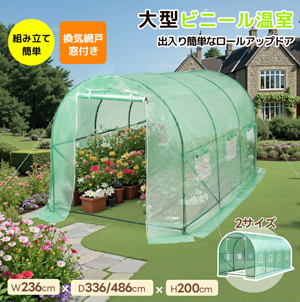 ビニール温室 大型 温室 家庭用 ベランダ カバー付き W236*D486*H200cm ビニールハウス 家庭菜園 ガーデンハウス ラック ビニールカバー付き 組立簡単 フラワーハウス