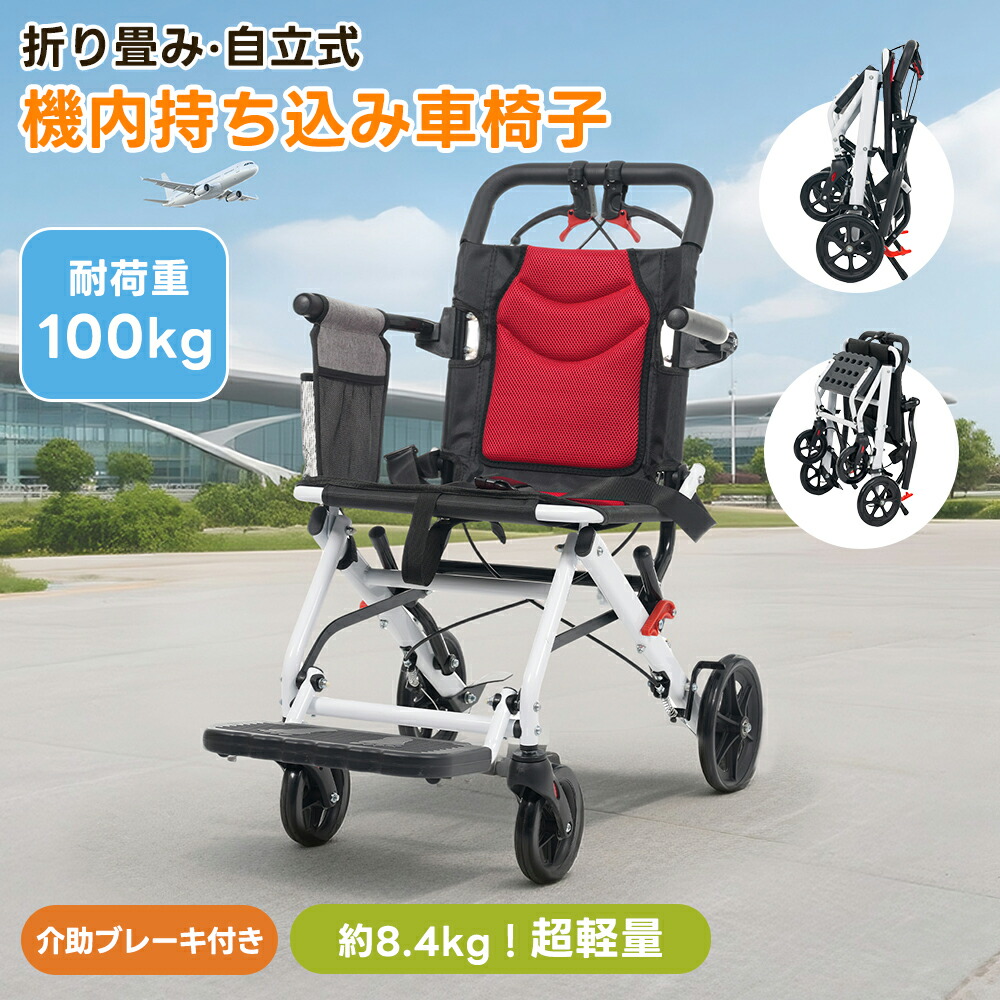 車椅子 アルミ製 軽量 介助用 コンパクト 折りたたみ可能 座面付き 四輪 介助ブレーキ付き キャスター付き 介護用品 自立式 軽量車椅子 新品 介護 福祉用具 耐荷重100kg おしゃれ