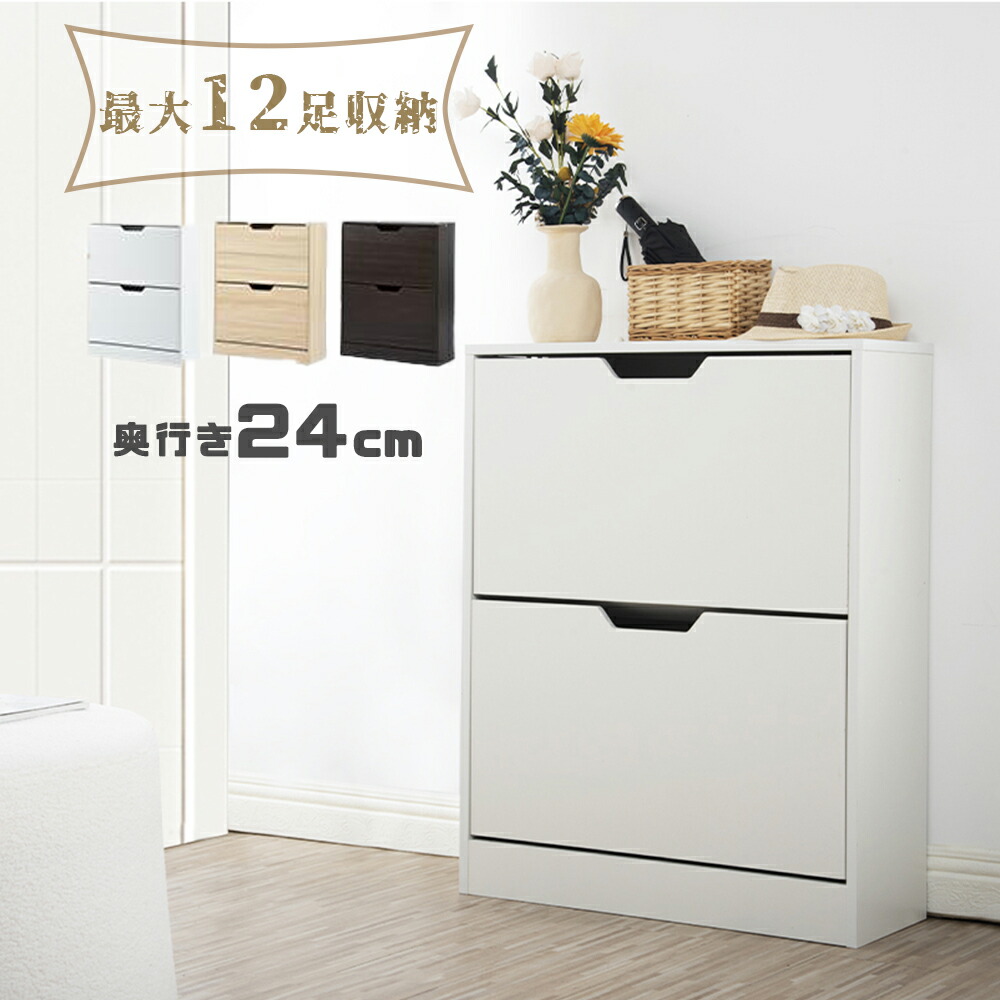 シューズラック スリム 靴箱 シューズボックス 下駄箱 超薄型 2段 くつ箱 靴入れ 収納ラック エントランス 靴収納 靴収納棚 木製下駄箱 超スリム型 消臭 ホワイ おしゃれ
