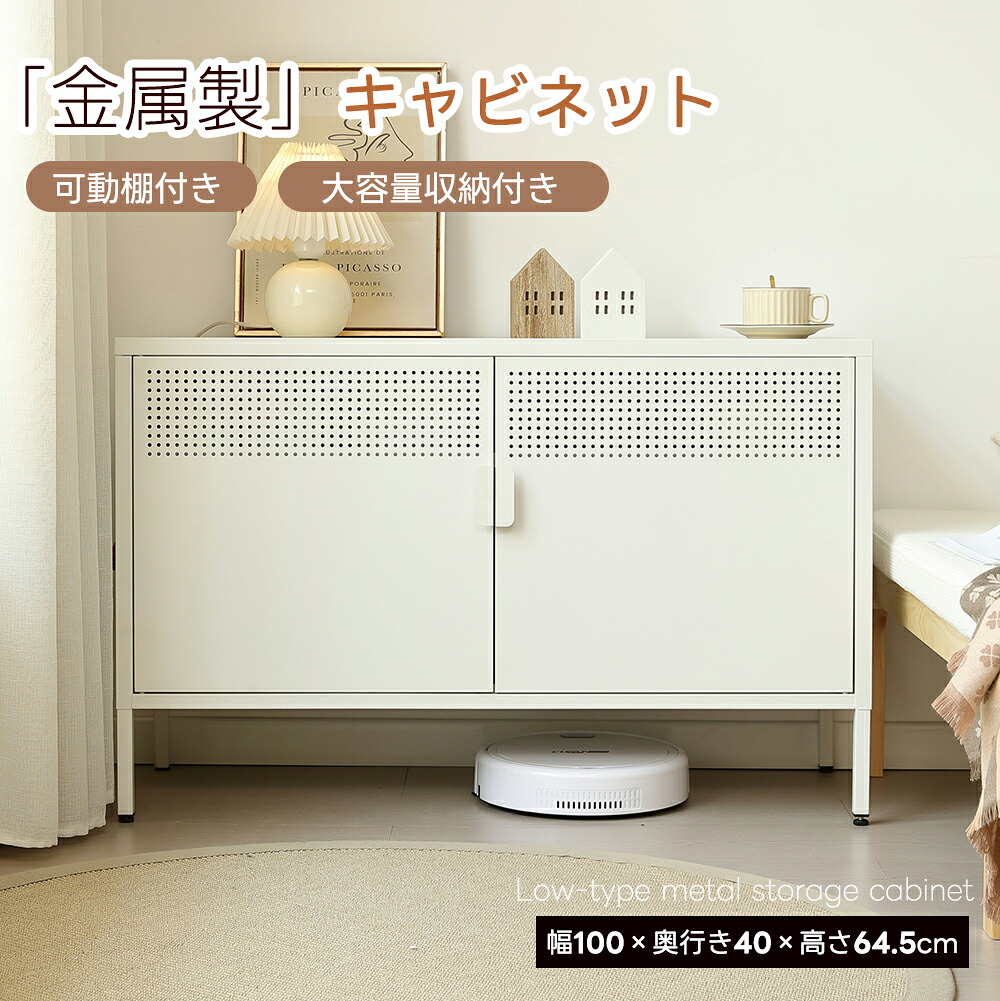 キャビネット 金属製キャビネット 収納棚 幅100 扉付き サイドボード おしゃれ リビング モダン 棚 スチールチェスト 書類 扉 取っ手 ホワイト 韓国インテリア