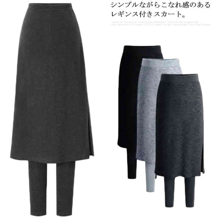 スカートレギンス付き ロング丈 サイドスリット おしゃれ