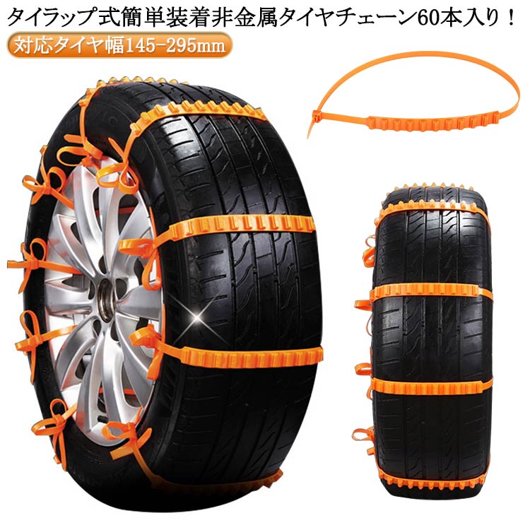 雪道 60本入 ジャッキアップ不要 非金属 滑り止めチェーン 簡単装着 タイヤチェーン ナイロン製 凍結 結束バンド 車用 汎用 ホイールチェーン 使い捨て スノーチェーン