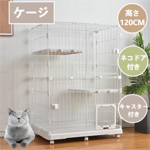 猫 ケージ 収納型 キャットケージ 2段 1段2段可能 キャットハウスペット ペットグッズ 猫用品 キャスター付