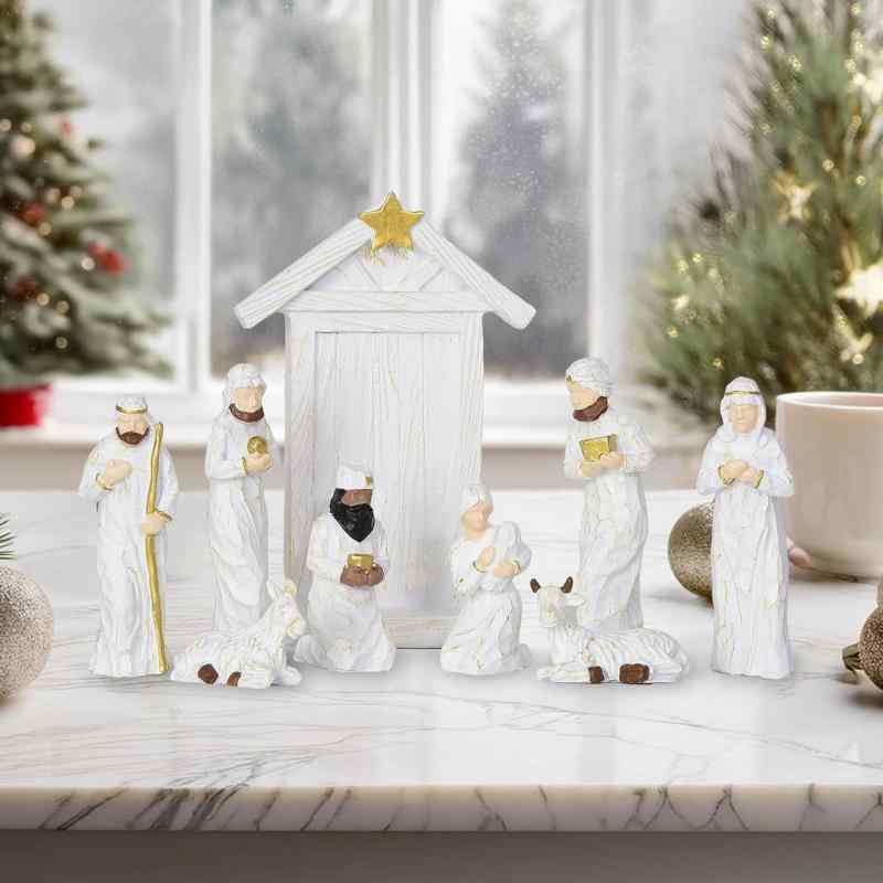 置物 キリスト降誕 聖家族 9点セット ミニチュアフィギュア イエス生誕 ジオラマ レジン製オーナメント クリスマス飾り 聖なる夜 デコレーション ヨーロピアン