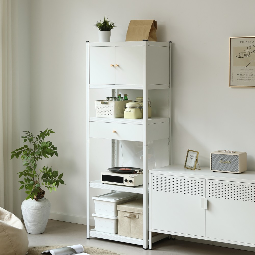 スチールラック オープンラック 引き出し付き 扉付き 可動棚 大容量収納 ボトル不要 収納ラック キッチンラック 食器棚 収納棚 省スペース 組立簡単 オー スチールシェルフ