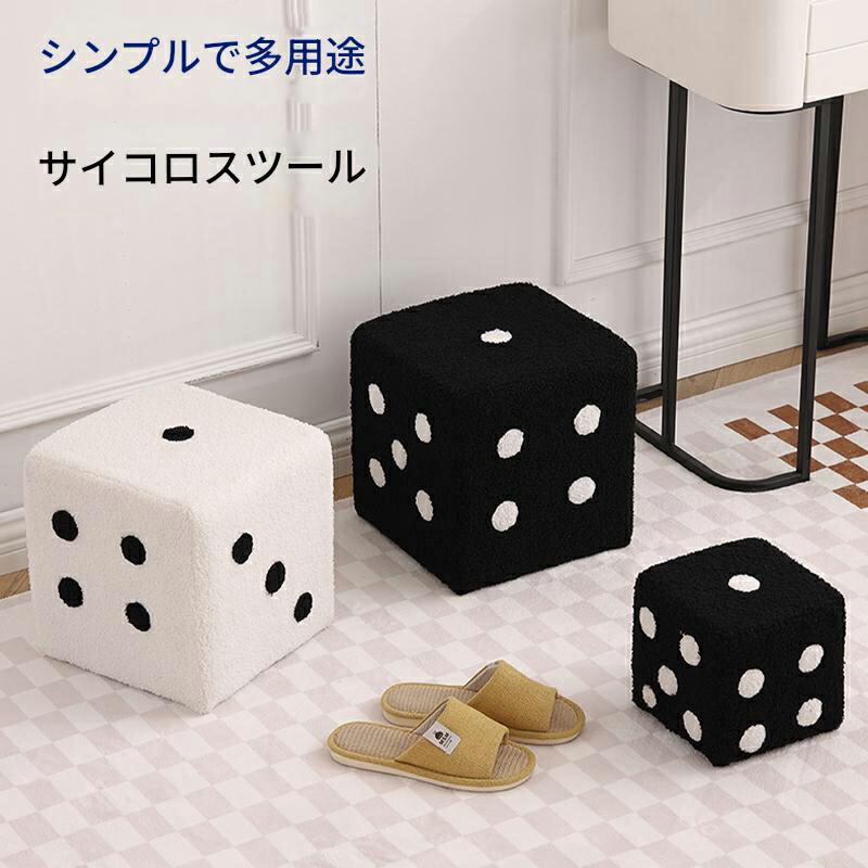 スツール ブラック ホワイト 幅29cm 高さ25cm さいころ 木製 ファブリック 布張り レトロ おしゃれ インテリア シンプル 完成品 ナチュラル