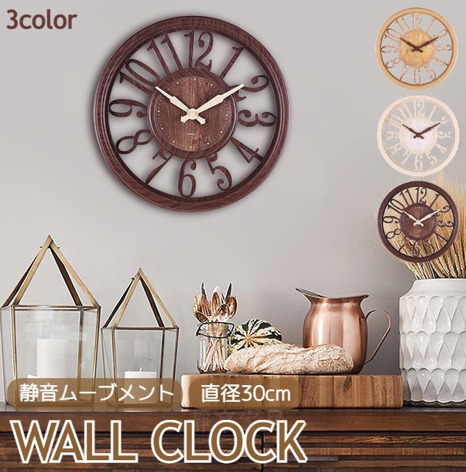 レビュー特典あり★時計 4色 掛け時計 おしゃれ 北欧 アンティーク 壁掛け 手作り 壁時計 北欧風 おしゃれ 数字 自由に設置できる