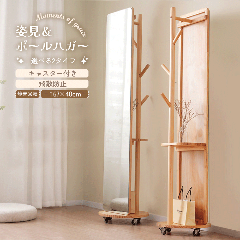 鏡 全身ミラー スタンドミラー 姿見 キャスター ハンガーラック 玄関 おしゃれ 収納 スタンド 回転 DIY 自撮り鏡鏡 ミラー 壁掛け鏡 飛散防止加工 ドレッサー スリムミ 全身鏡
