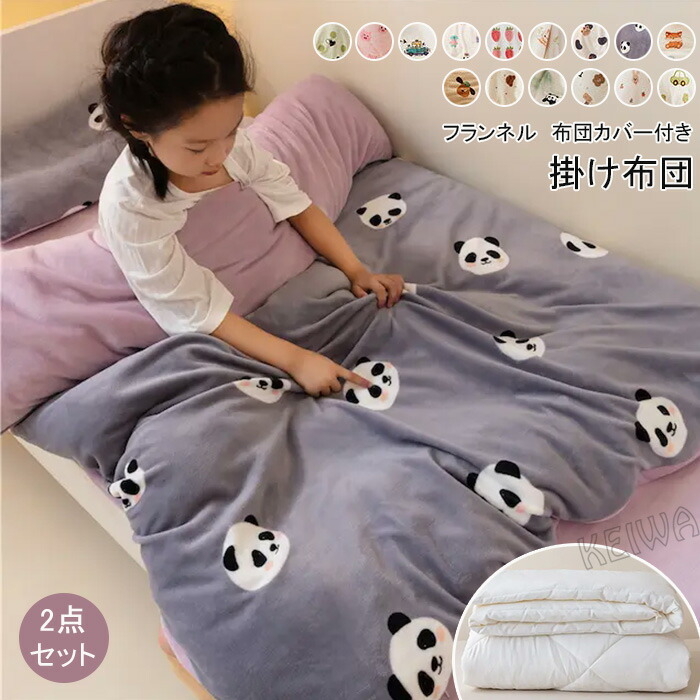 子供布団 掛け布団カバー 2点セット 肌掛け布団 子供用 掛け布団+布団カバー 布団用 肌布団 掛布団 掛ふとん キッズサイズ シングル フランネル 暖かい 洗える キッズ 女の子 男の子 お昼 子供