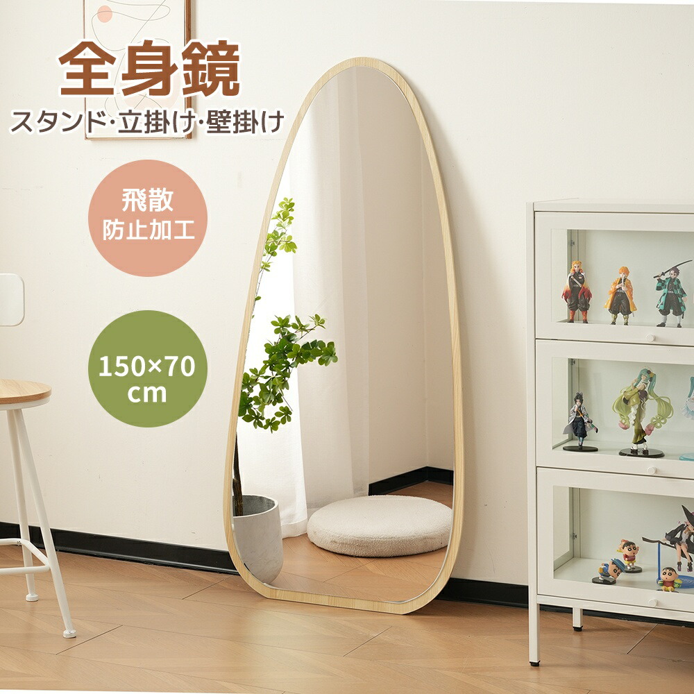 全身鏡 水滴型 姿見鏡 北欧 木目調 スタンドミラー 壁掛けミラー 立てかけ 姿見 鏡 ミラー おしゃれ 飛散防止 150*70CM スリムミラー 韓国 インスタ映え 飛散防止加工 インテリア