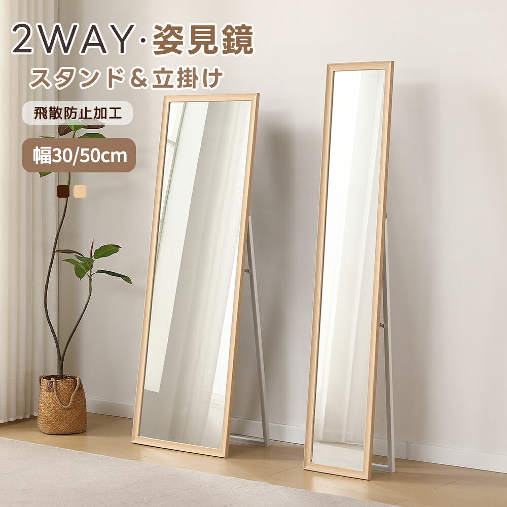 全身鏡 ミラー 玄関 全身 姿見 30×160cm 50×150cm おしゃれ ウェーブミラー スタンド 壁掛け 立て掛け DIY 自撮り鏡 壁掛け鏡 飛散防止加工 全身ミラ 鏡