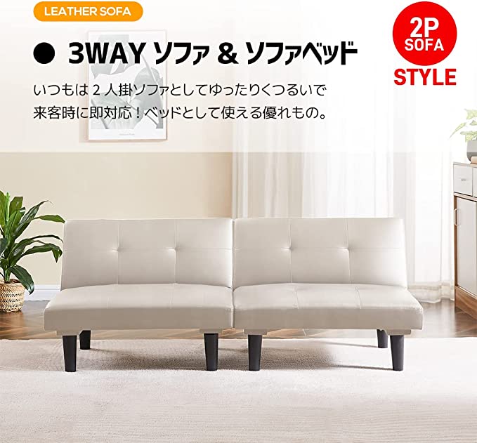 ソファベッド 折り畳み 6段階調節 ソファー 2人掛け PUレザー 多機能 座椅子 3WAY リクライニングソファ PCV 2P 2人掛けソファー ハイバック リクライニング コン ローソファー