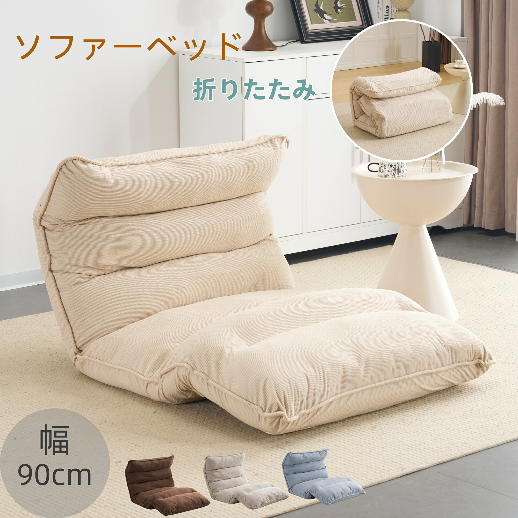 ソファーベッド ソファベッド ローソファー 1人掛け マルチに使える 幅90 18段階リクライニング 座椅子 折りたたみ コンパクト 折りたたみベッド 圧力分散 おしゃれ 完成品 組立て不要