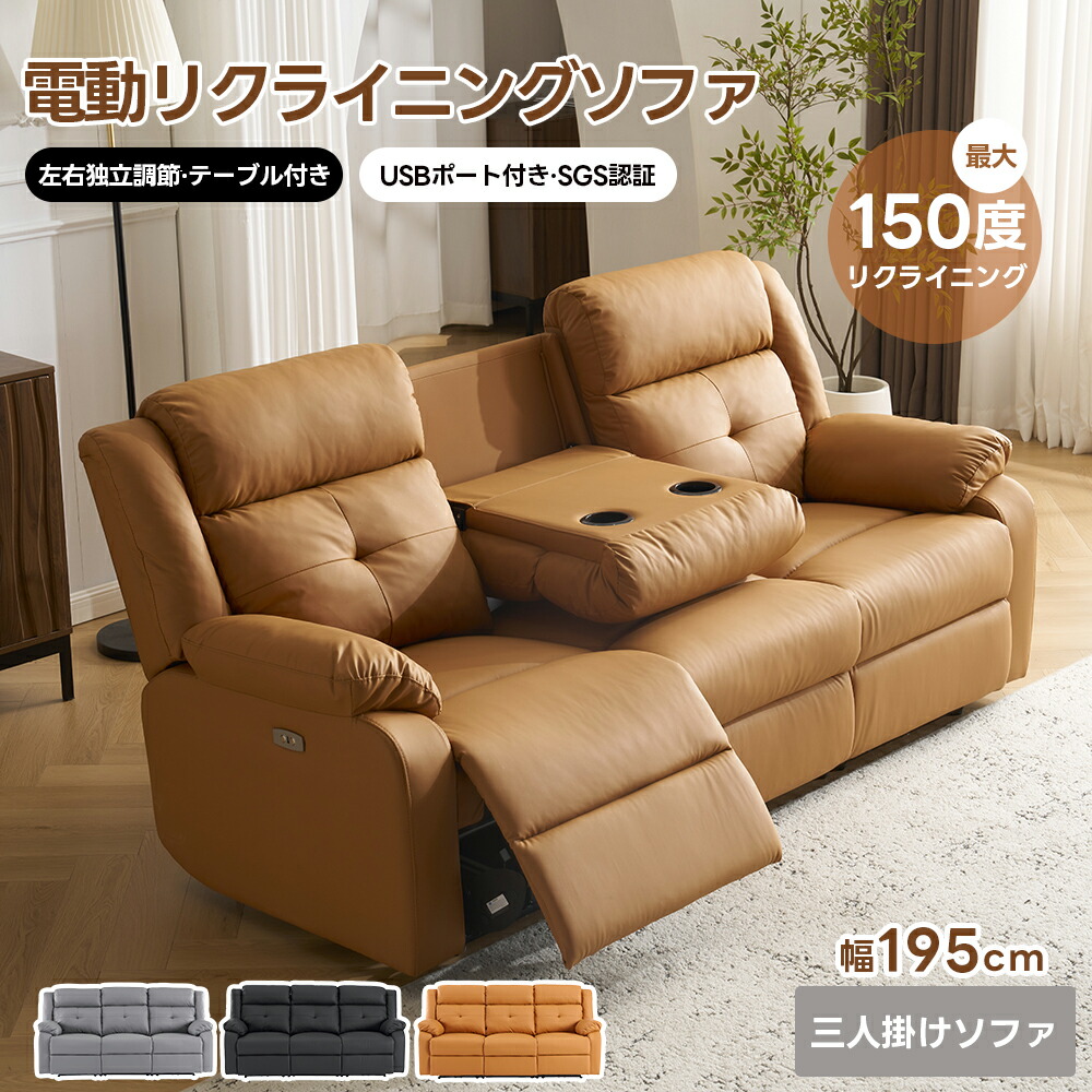 リクライニングチェア リクライニングソファ 3人掛け 電動 リクライニング 左右独立調節 テーブル付き オットマン一体型 電動ソファ 耐圧分散 一人暮ら パーソナルチェアー