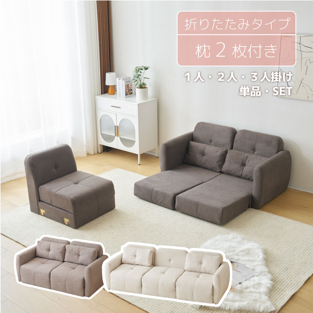 ソファ ソファベッド 折りたたみ1~3人掛け 2way ローソファー 座椅子 クッション付き フロアソファー コンパクト ソファー カウチソファ 北欧 リビングソファー ファブリック モダン
