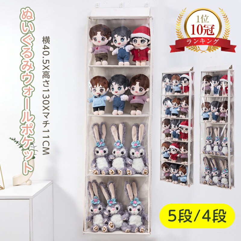 ぬいぐるみウォールポケット ぬいぐるみ 収納 ウォールポケット ディスプレイ コレクションケース 5段 4段収納ケース 収納ボックス 見せる収納 小物 ドア掛け収納式ポケット コレクション