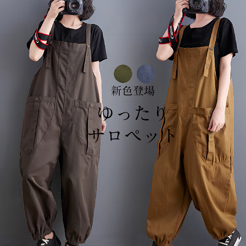 サロペット レディース 大きいサイズ パンツ オーバーオール ワイドパンツ ロングパンツ ゆったり 体型カバー シンプル 無地 かわいい 美脚 カジュアル 夏 性 お呼ば 春