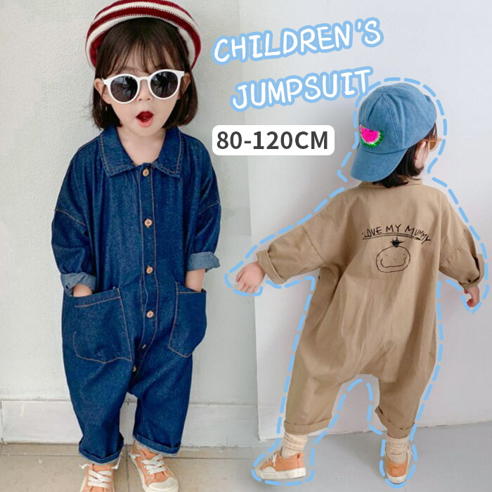 ベビー服 キッズ オールインワン オーバーオール デニム ボディースーツ カバーオール 襟付き シャツ 長袖 ロング丈パンツ 子供服 つなぎ 通園着 入園式 シンプル 冬 秋 ポケット付き 一体型 春