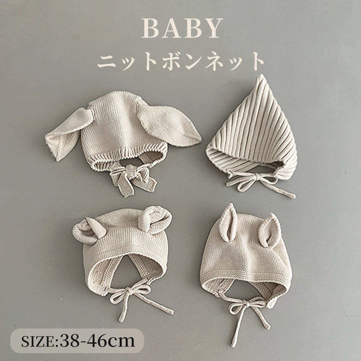 かわいい ベビー ニットボンネット 耳付きボンネット ベビー帽 新生児 ニューボーンフォト ニット 出産祝い 赤ちゃん ニッ 帽子