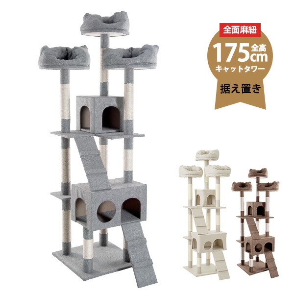 キャットタワー 据え置き 多頭 大型 おしゃれ 全高175cm ファブリック 猫用品 猫タワー 高級 組立簡単 爪とぎ 麻 上りやすいネコハウス付き 多頭飼い キャットトンネル 猫おもちゃ 隠れ家