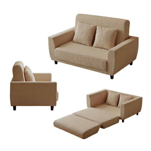 ソファーベッド 2人掛け ソファベッド 3way 折りたたみ コンパクト 圧力分散 線模様 取付可能な脚 抱き枕付き