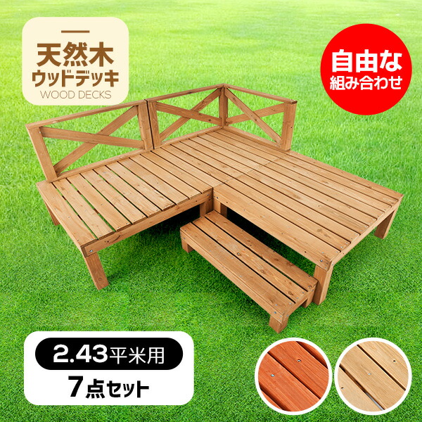 ウッドデッキ 天然木 キット 7点セット 0.75坪 ウッドパネル 家具ガーデンファニチャーバルコニー ベランダ 北欧 キットウッド 新生活 踏み台付