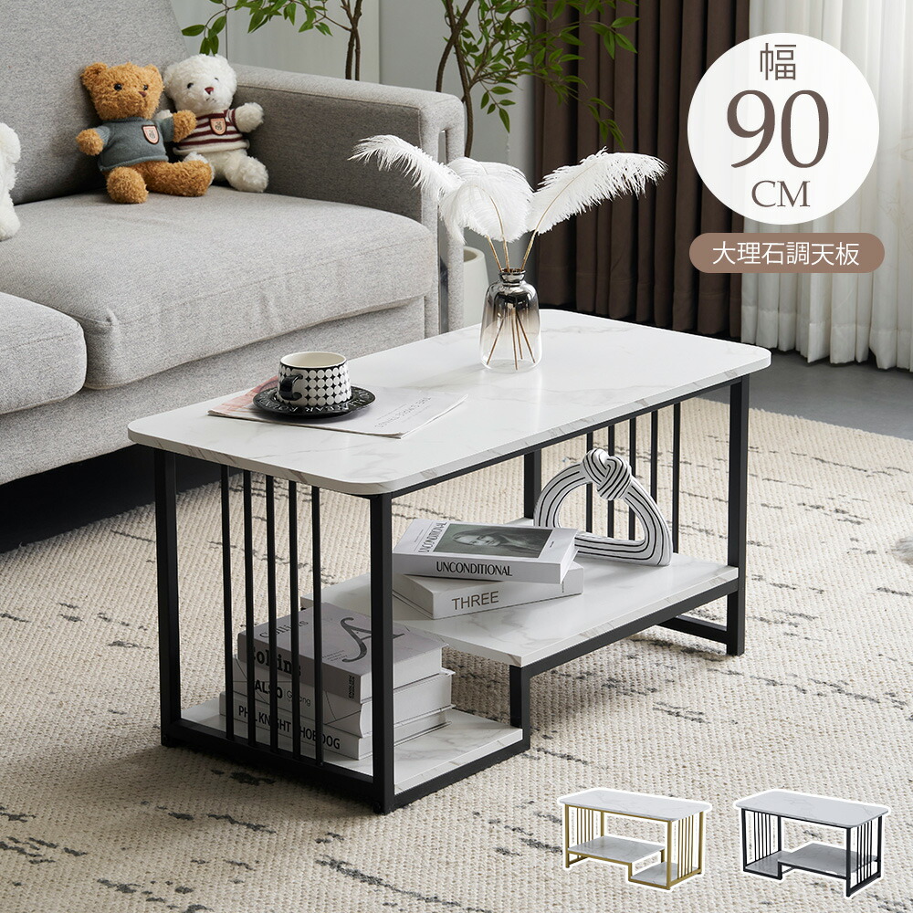 センターテーブル 大理石調 幅90cm 収納付き ローテーブル スチール おしゃれ 収納棚 棚付 リビングテーブル コンパクト 北欧 ソファテーブル スチール脚 頑 カフェテーブル