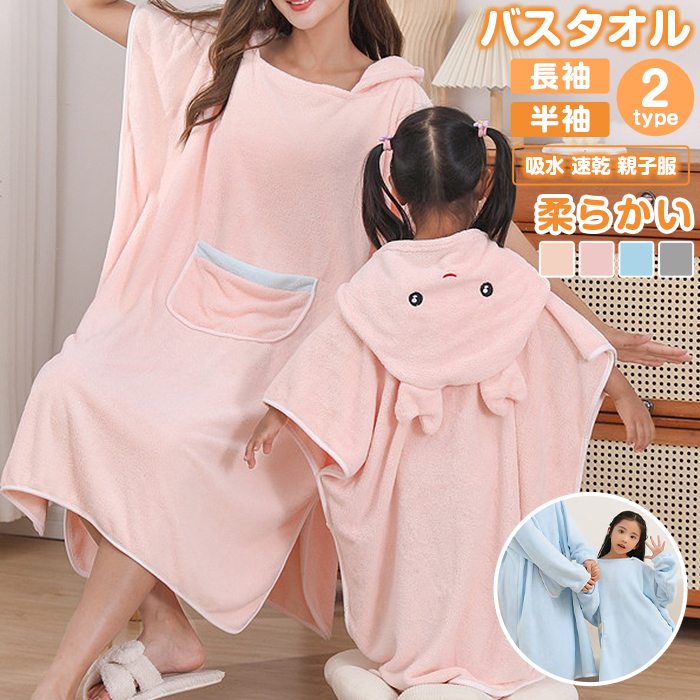 バスタオル バスローブ 親子服 半袖 長袖 レディース キッズ バスポンチョ 着るバスタオル 大人用 子供用 吸水 速乾 肌触り 柔らかい 無地 ポケット付き 帽子付き お風呂上がり用