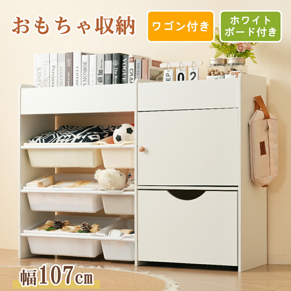 おもちゃ収納 ラック コンパクト 木製 おもちゃ箱 絵本棚 おしゃれ 幅107cm ワゴン付き 大容量 組立カンタン 収納ラック 子ども ボックス 子供用 玩具箱 ランドセルラック 引き出し