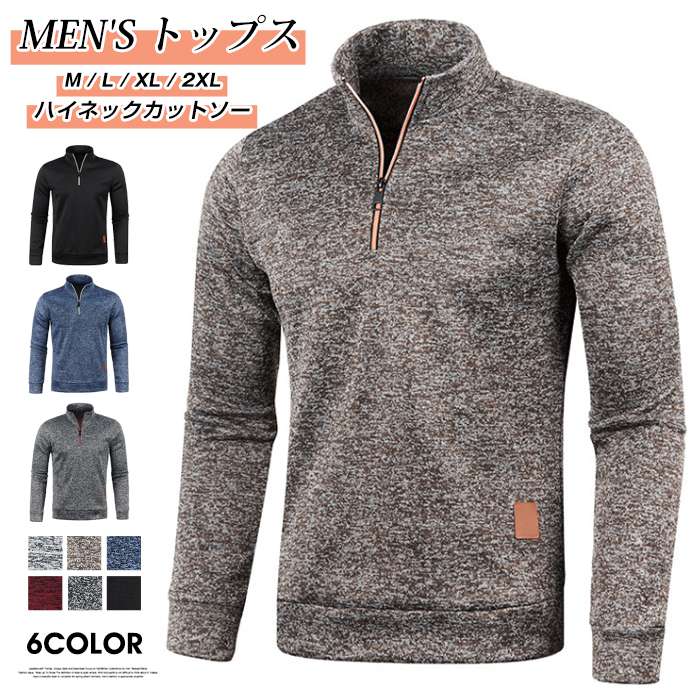 ハイネック メンズ カットソー ハーフジップ スウェット 秋冬 長袖おしゃれ ジッパー 30代 40代 トップス ルームウエア 立襟 50代