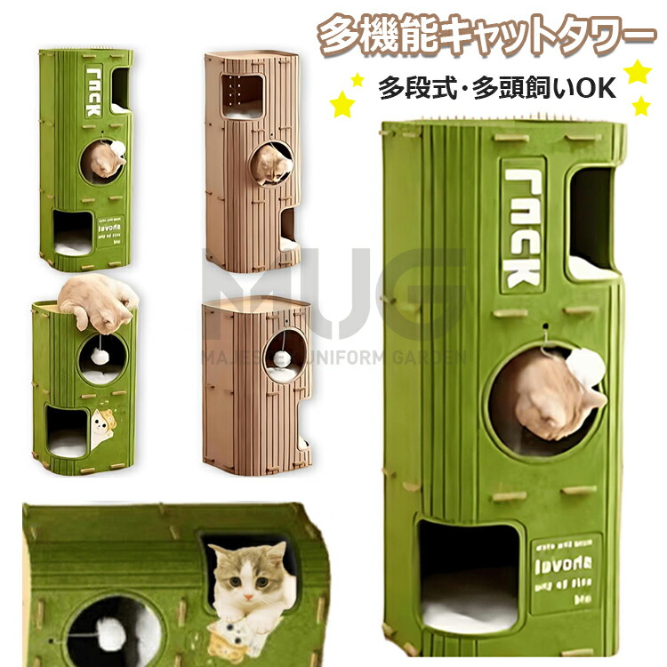 多段式猫用フェルトハウス 猫ハウス 爪研ぎ キャットハウス 多機能キャットタワー 大型猫 多頭飼い 2段 3段 コンパクト小型スペース インテリア 爪とぎ遊び場 猫ベッド休憩所 ふ お昼寝台