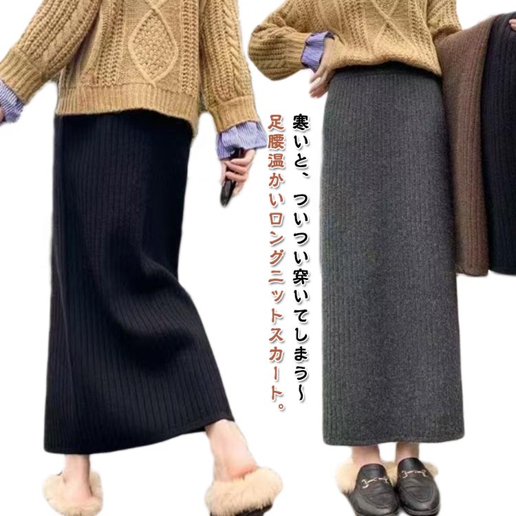 送料無料 タイトスカート ロング ペンシルスカート ニット ロングスカート ニットスカート ハイウェスト 着瘦せ 暖かい きれいめ 秋冬 おしゃれ
