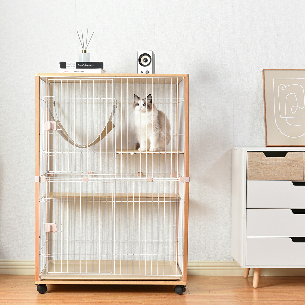 猫 ケージ キャットケージ 2段 木製フレーム ハンモック付 広々 大型 猫ゲージ 高級感 おしゃれ キャットハウス ネコ ハウス 多段 留守番 保護 脱走防止 多頭 スチール ペットケージ 多頭飼い