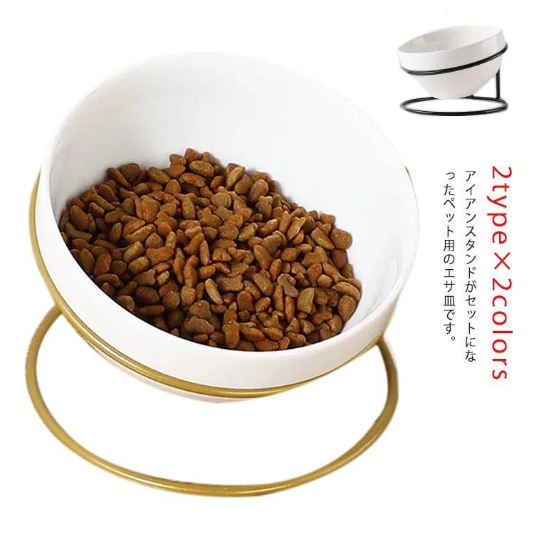 ペット 食器 陶器 猫 フードボウル 傾斜 陶器 水 スタンド ペット エサ皿 犬 猫 食器台 金属製 スチールスタンド 取り外し シングル