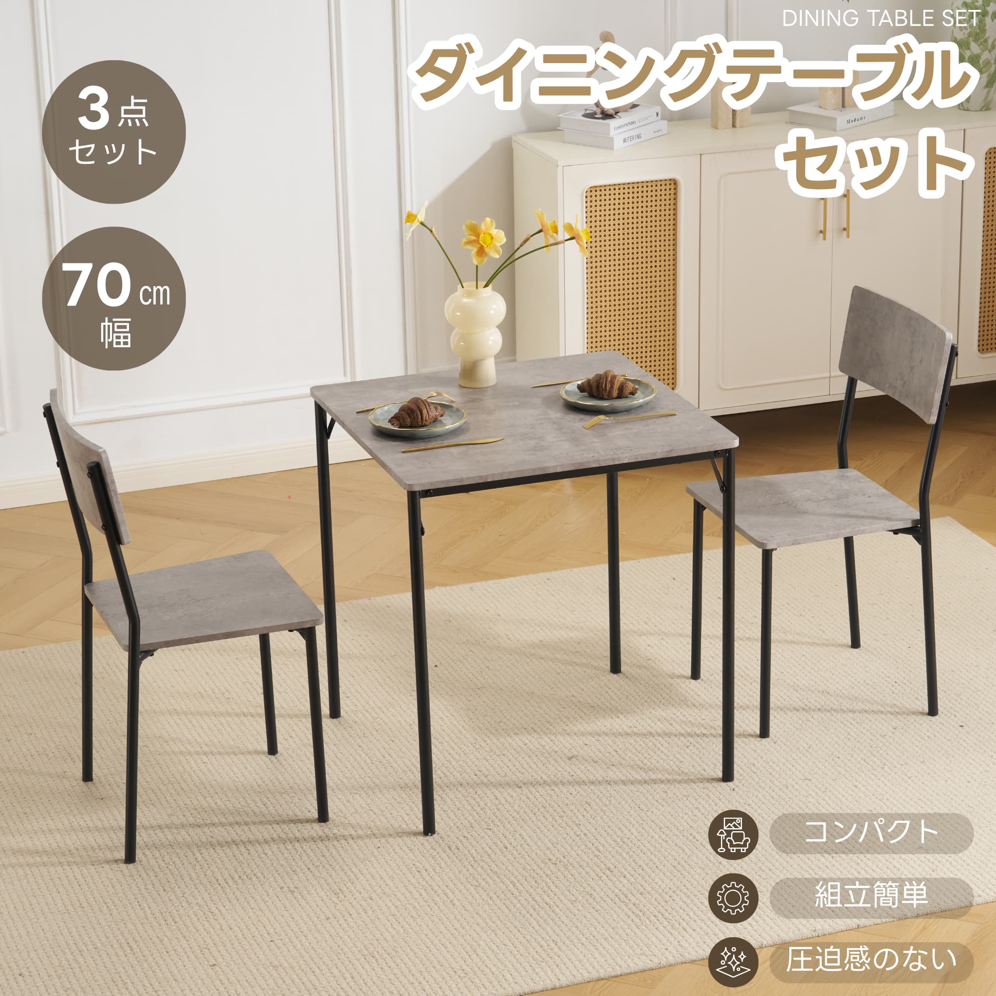ダイニングテーブルセット 2人掛け 3点セット ダイニングセット ダイニングテーブル ベンチ 食卓 テーブル チェア セット おしゃれ 木製 コンパクト 北欧